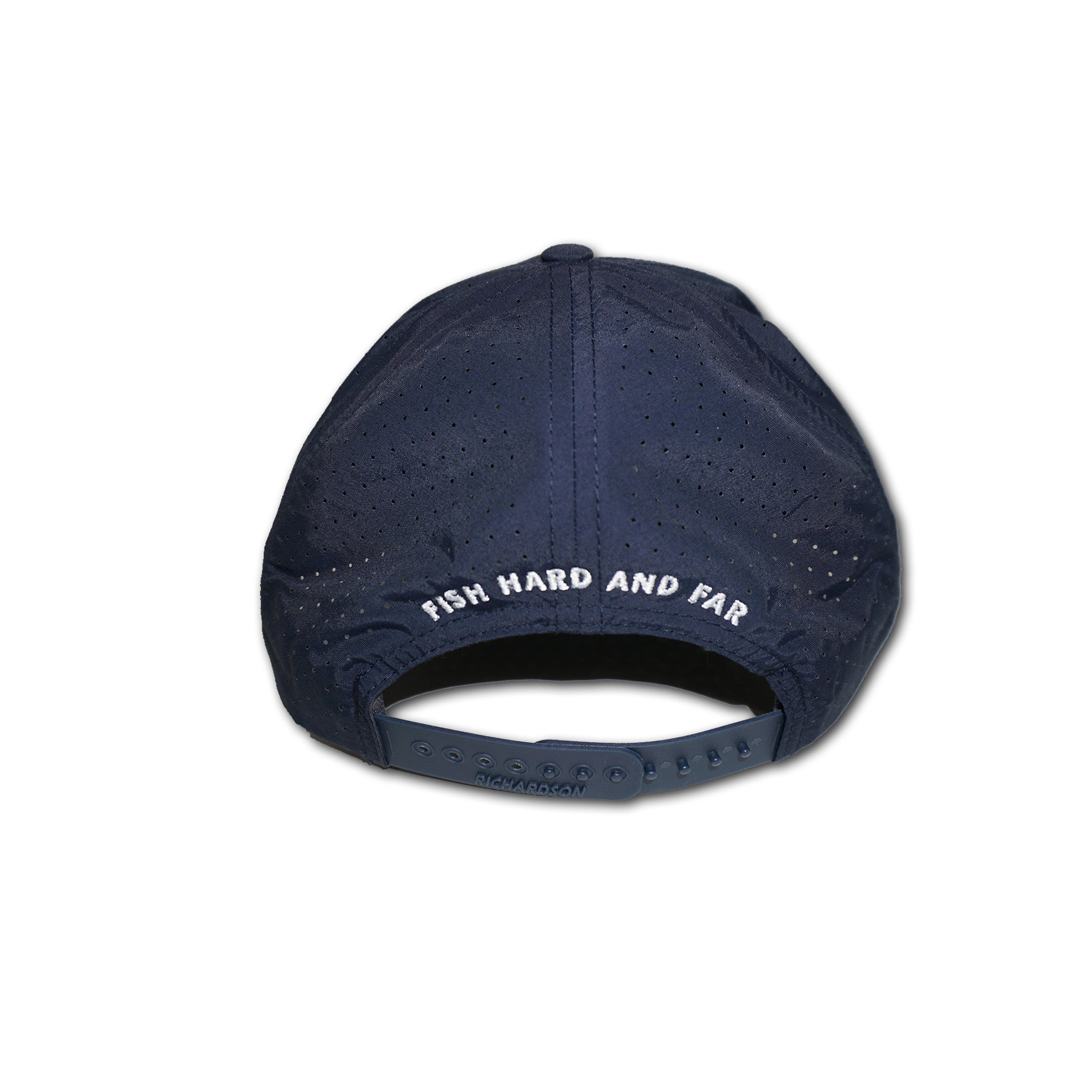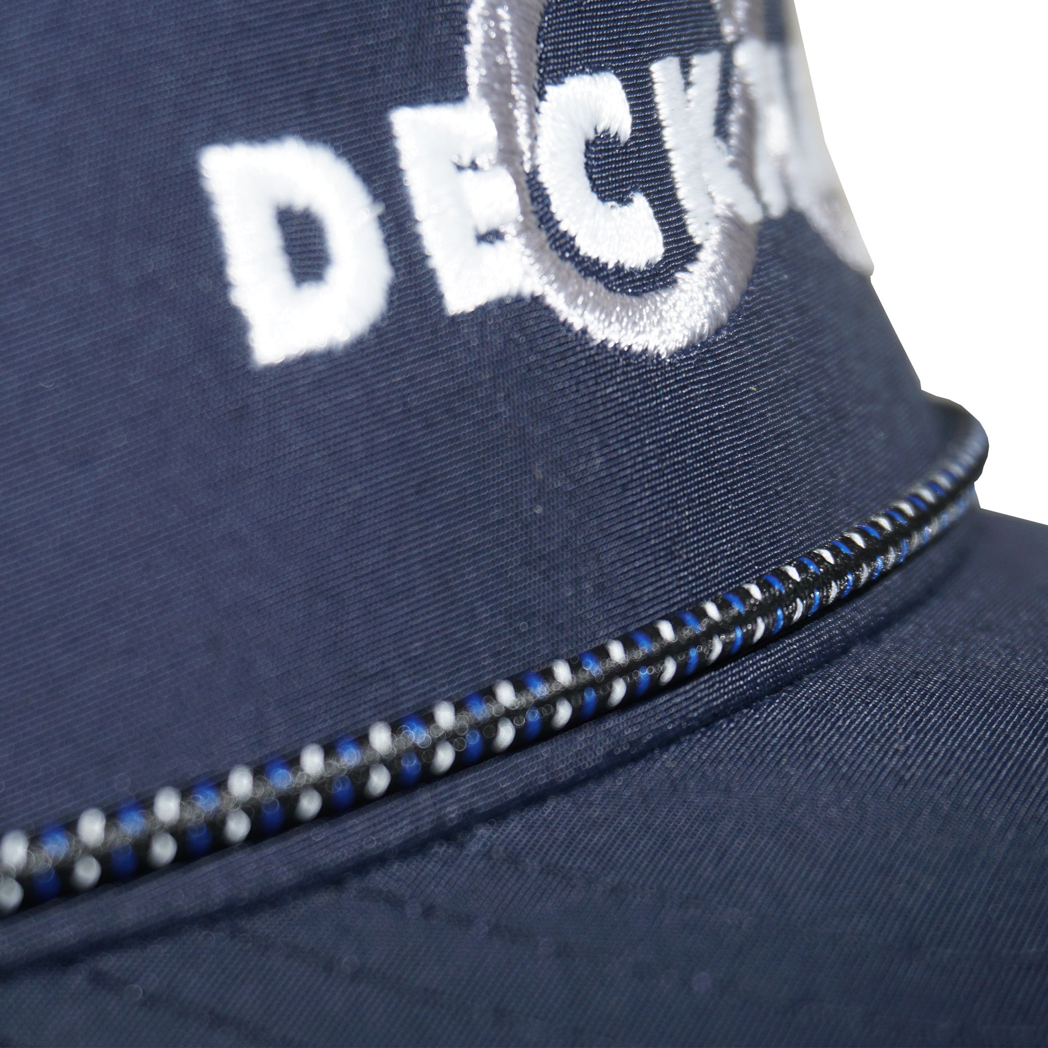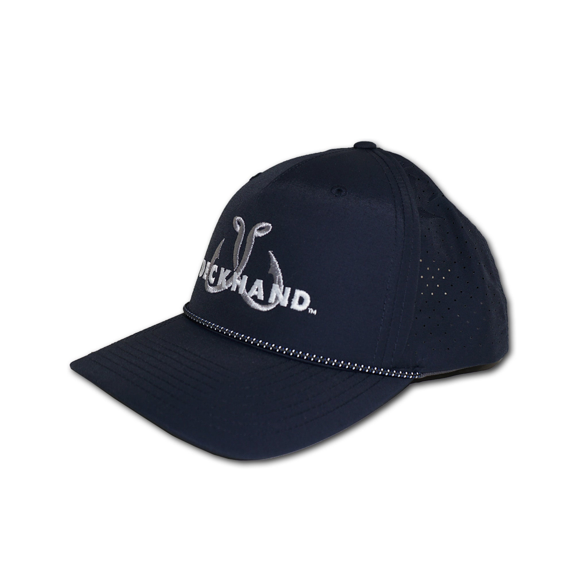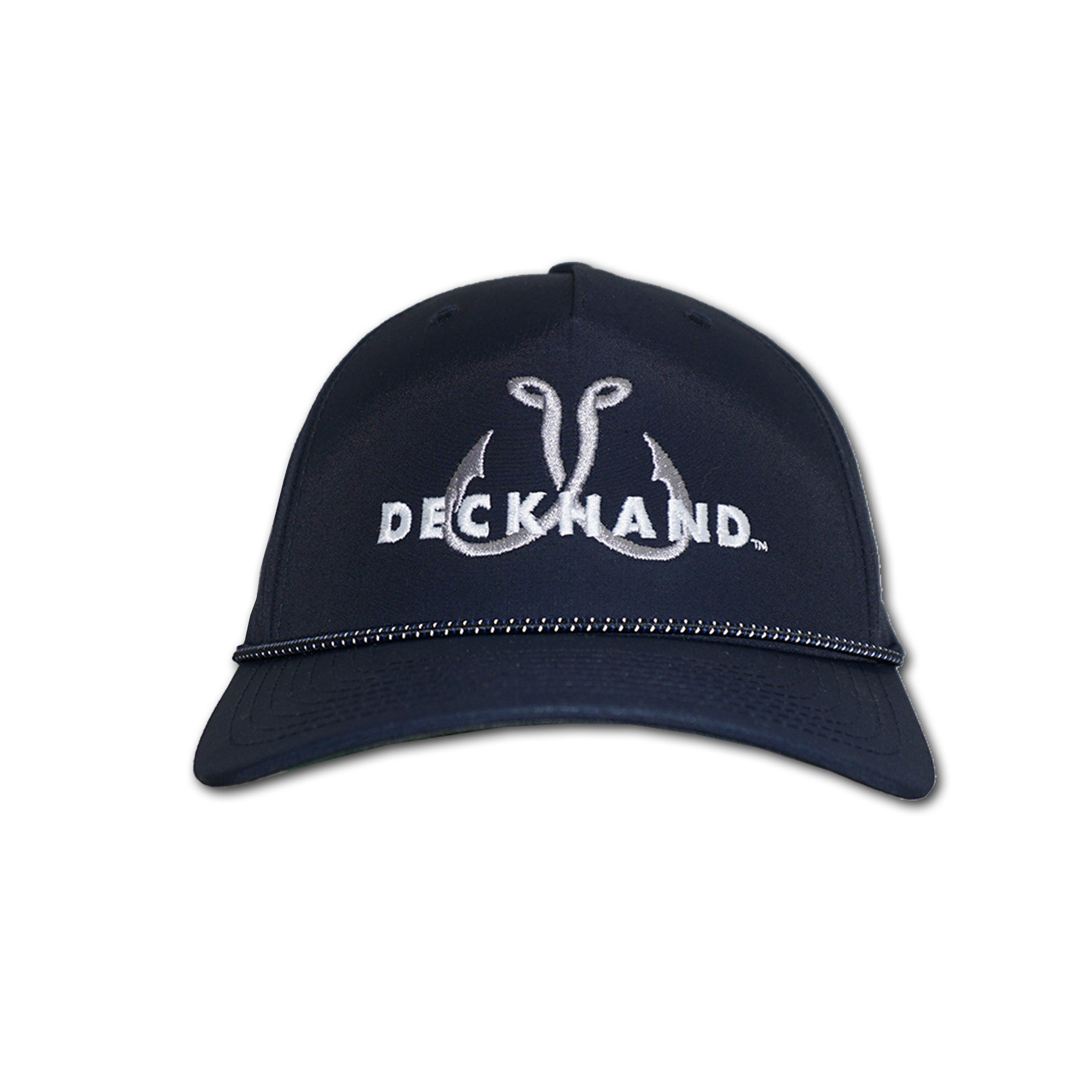 • Navy/Performance Water Repellant Aqua Trucker hat featuring a front embroidered Deckhand logo.